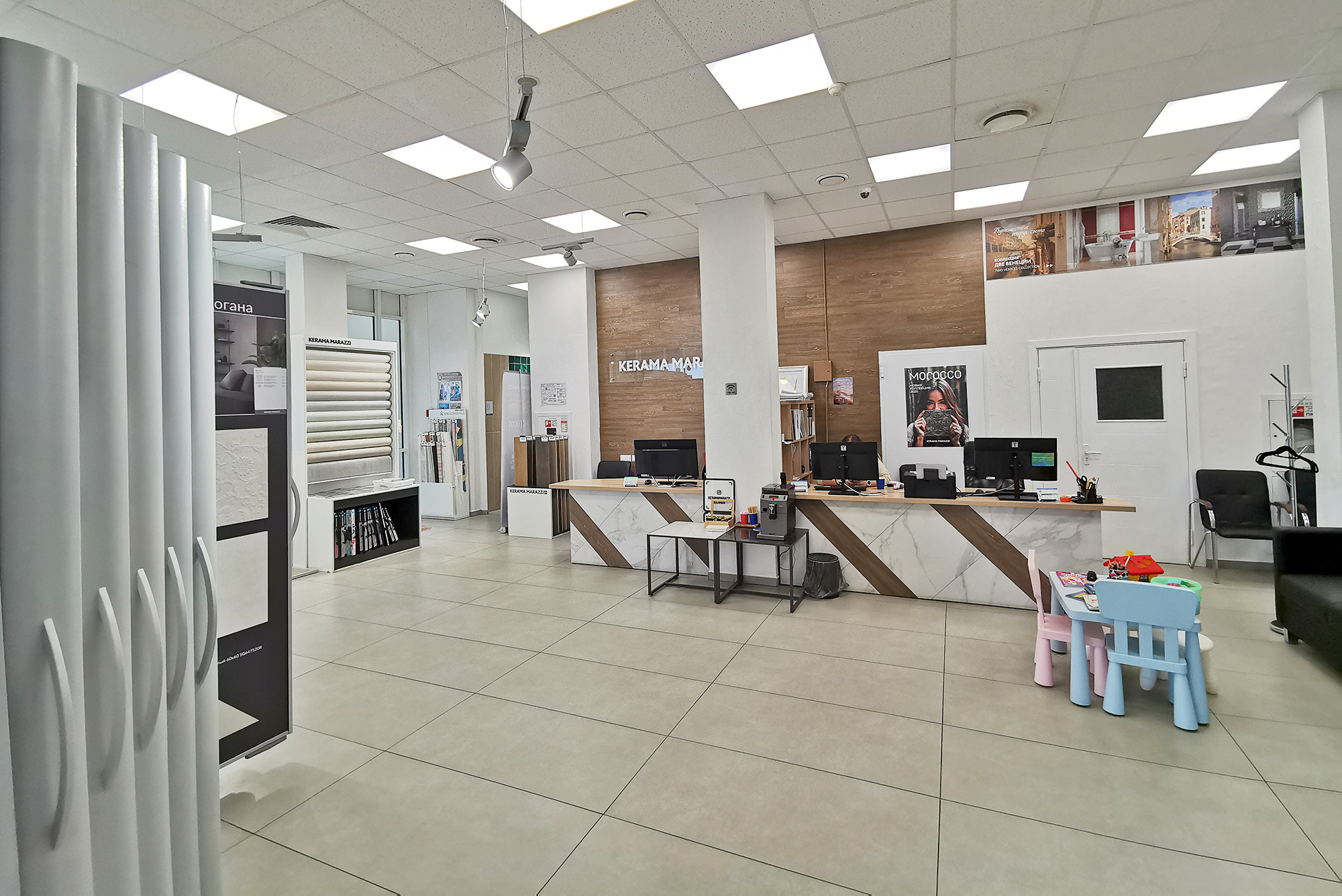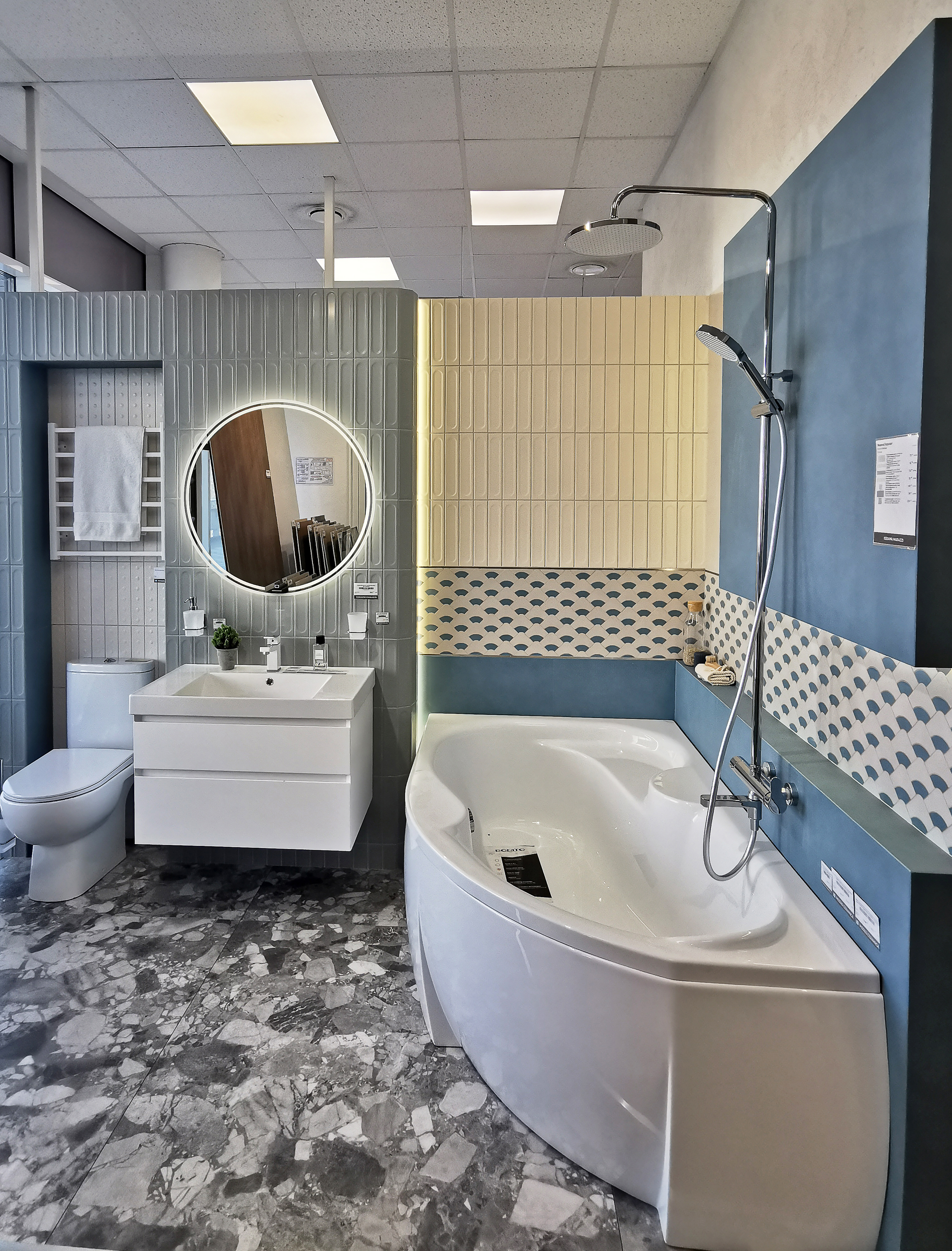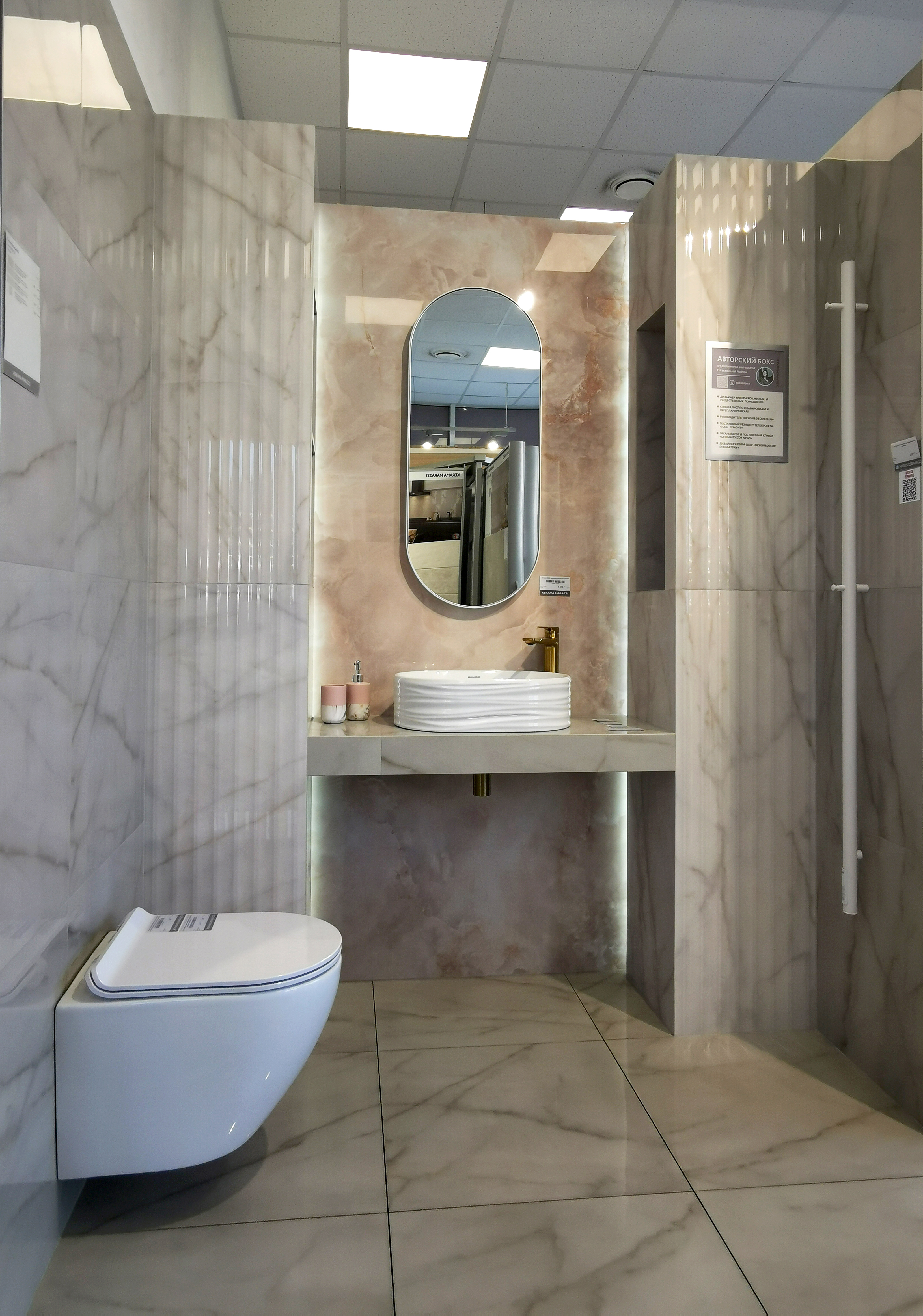 Салон включает 7 боксов, представляющих интерьерные кабины с самыми популярными сочетаниями плитки и сантехники. Эти боксы предлагают готовые решения, которые экономят ваше время и силы, предоставляя профессиональную поддержку и консультации.