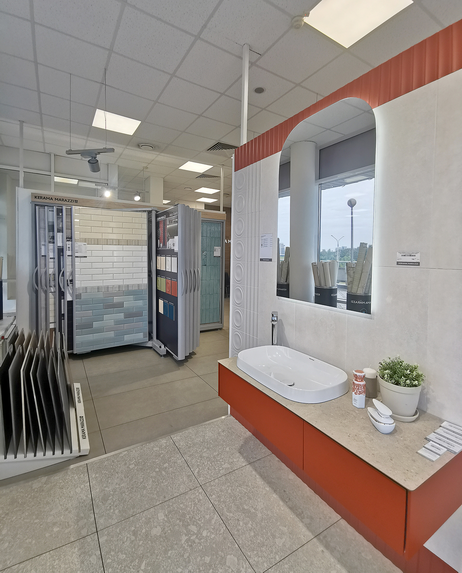 Добро пожаловать в салон плитки и сантехники KERAMA MARAZZI, расположенный на Победителей, 129. Это место, где ваши идеи об идеальном доме обретают форму на площади 190 квадратных метров, создавая вдохновляющую атмосферу для реализации ваших мечтаний.