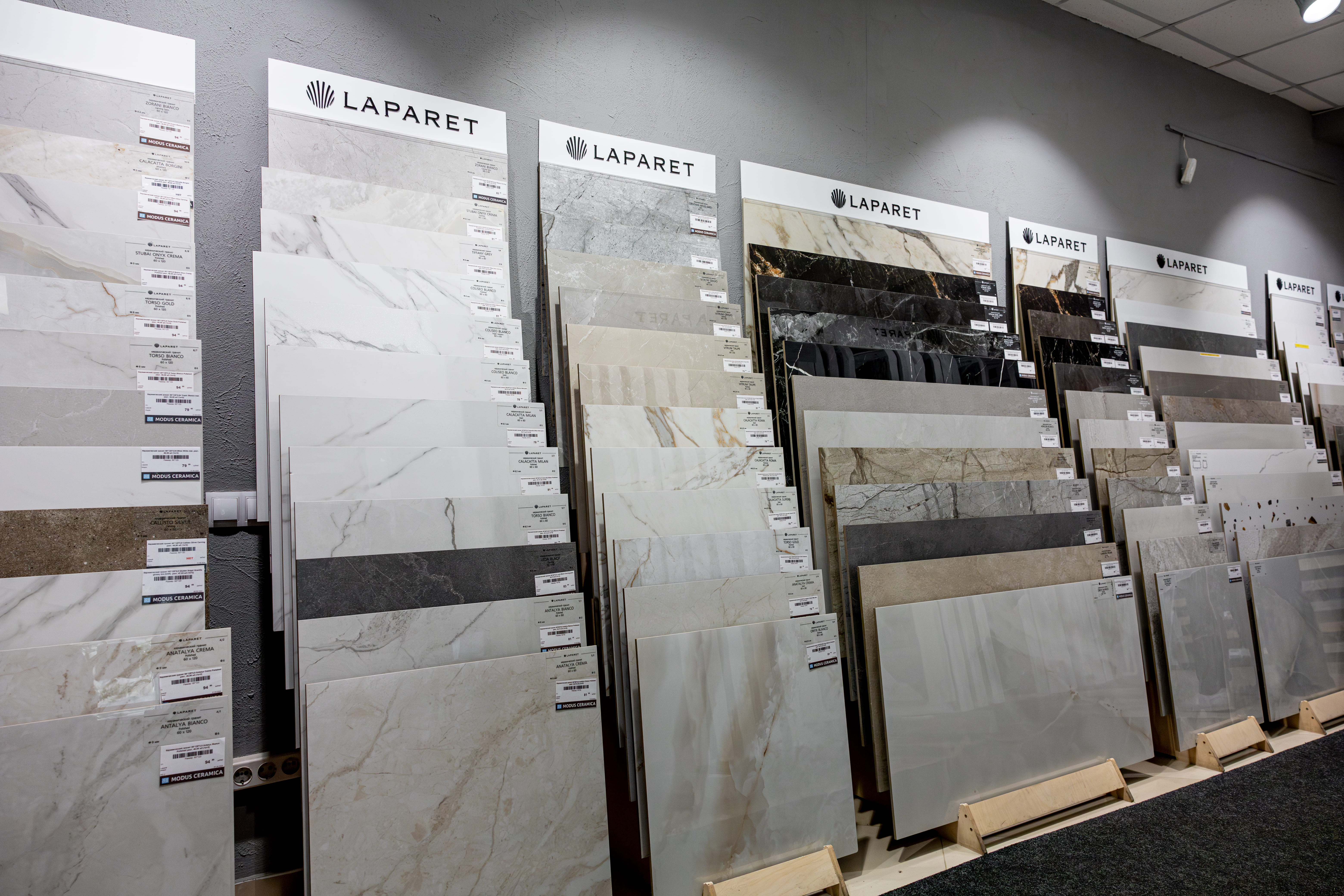 Керамограниты LAPARET выставлены в специализированных экспозиторах в виде ступеней, на которых закреплена плитка, что позволяет увидеть растяжку цвета и быстро сравнить между собой понравившиеся образцы. 200 образцов предоставляют возможность легко изучить и выбрать идеальный вариант.