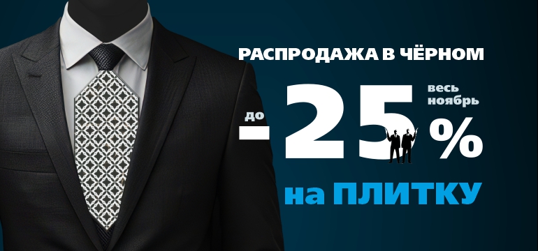 РАСПРОДАЖА В ЧЕРНОМ: до -25% на плитку и керамогранит